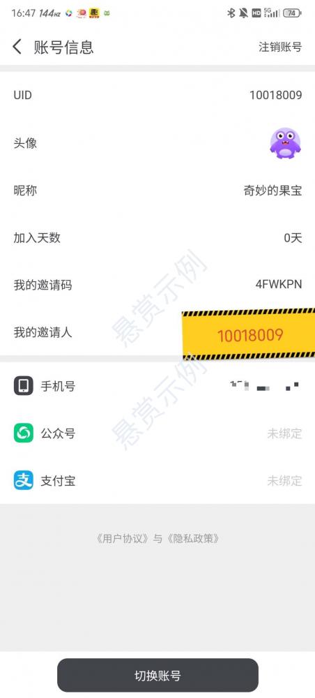设置我的邀请人10018009 没有的填上去4FWKPN 必须显示在做,否则无效