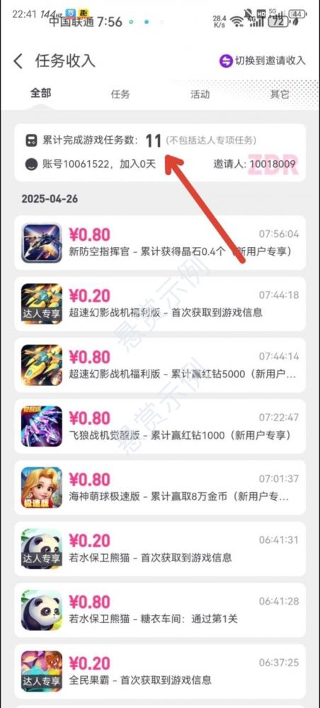 游戏试玩,积累完成游戏任务数为11截图提交,没有达到的不要交。