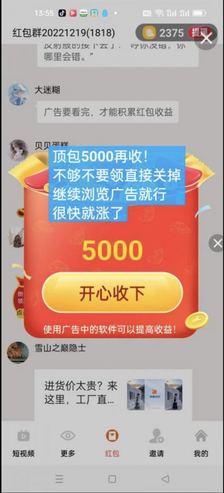 红包群里领红包,5000再领【多浏览页面广告,金币涨的快】