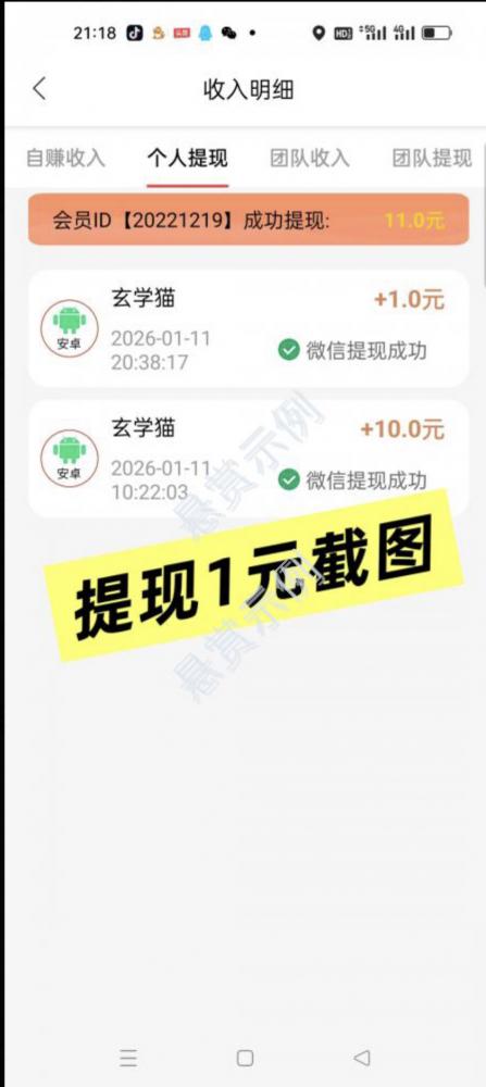 完成1元或以上提现截图,完成后别卸载,过几天在去权重消失的可以在撸点