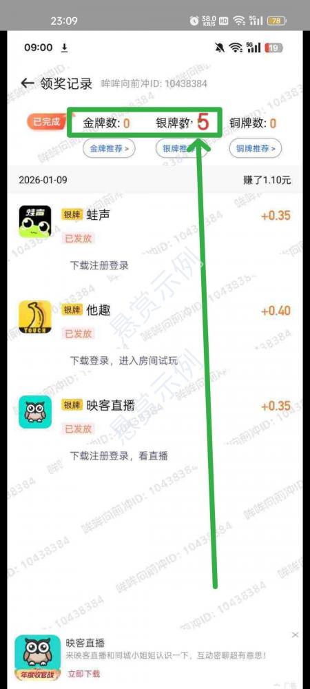 领奖记录,随便进一个游戏或应用浏览体验