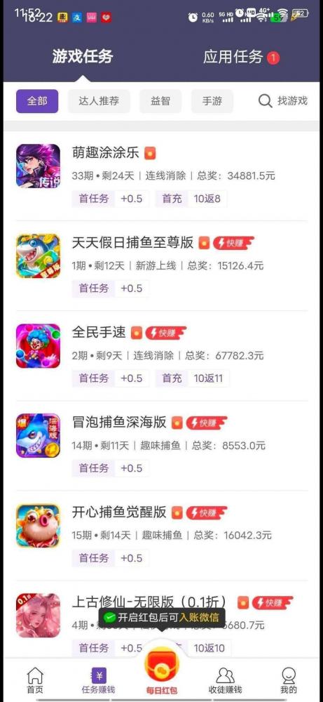 随便1次游戏收益即可,不要应用任务(推荐消消乐类,简单快速)