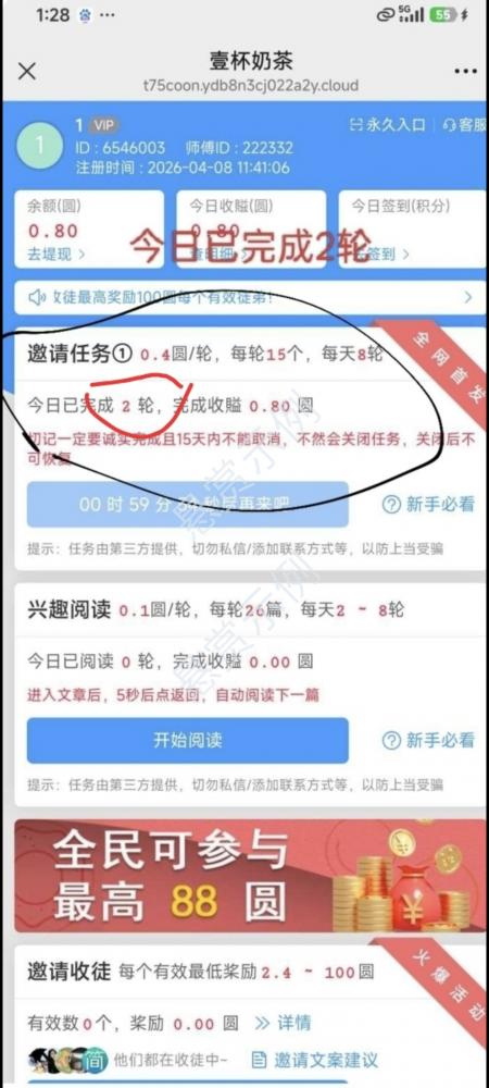 确认邀请人为685006,第一个邀请任务完成两轮
