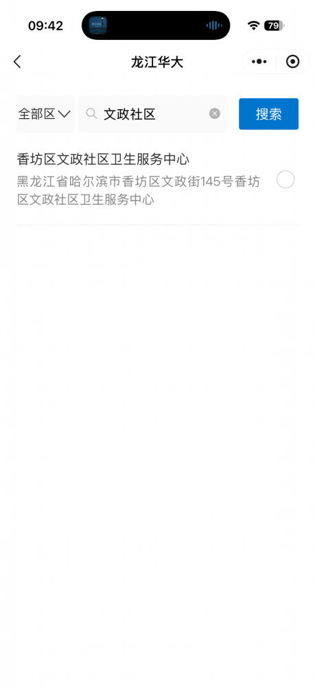 筛查点,搜索文政,选择哈尔滨市香坊区文政社区卫生服务中心