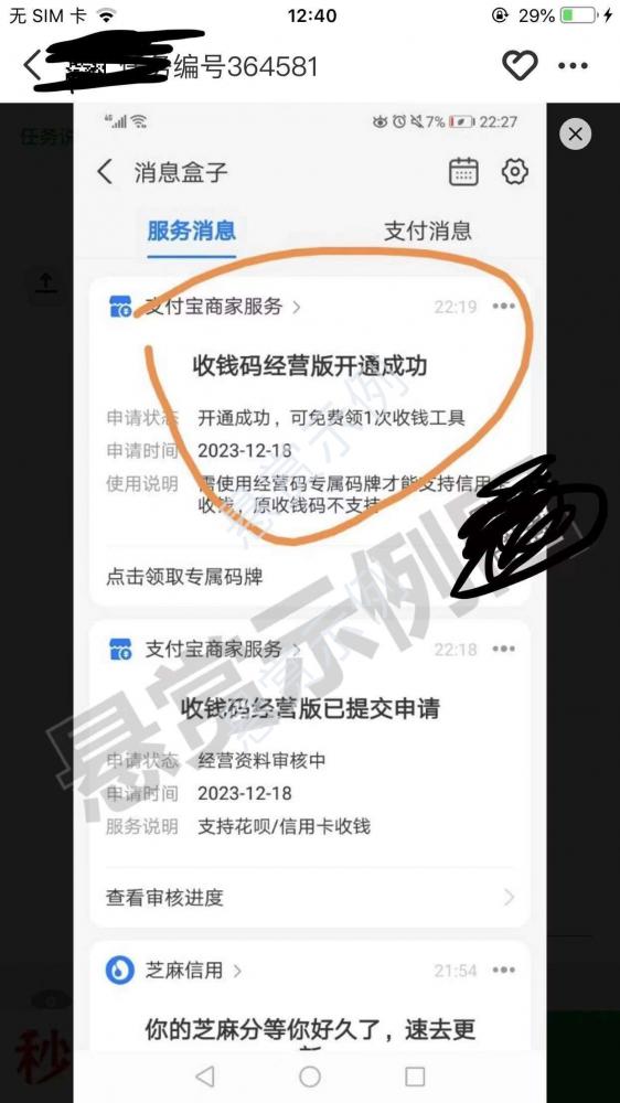 支付宝消息开通成功截图